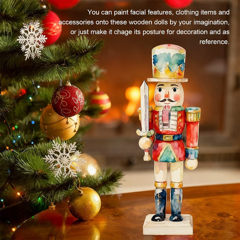 This isn’t just any nutcracker—it’s a handsome wooden soldier standing at attention, complete with a sword and classic silhouette. He’s waiting for your personal touch to bring him to life!