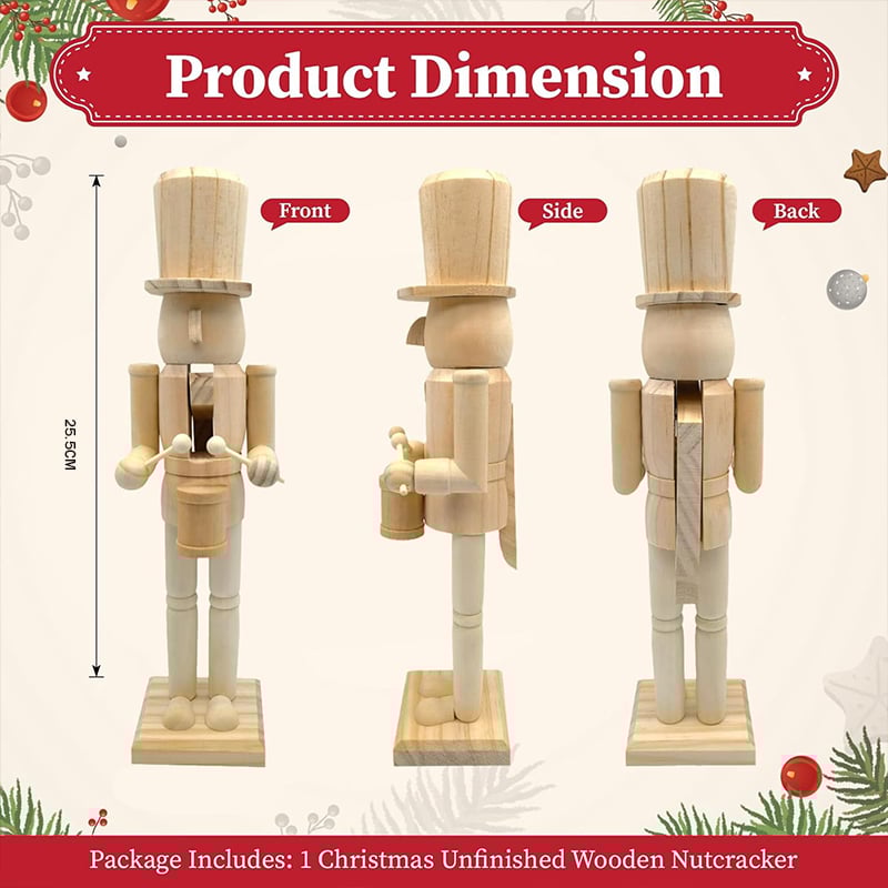 Meet your new favorite holiday tradition! These unfinished wooden nutcrackers are blank canvases waiting for your creative touch. Perfect for kids, adults, and everyone in between - bring these classic soldier figures to life with your unique style!